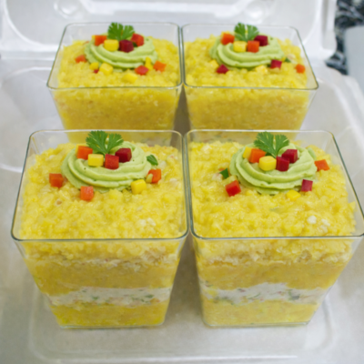 Sorprende a tus invitados con crostinis, moldes de causa, ceviches, tablas de quesos y charcutería, perfectos para cualquier ocasión.