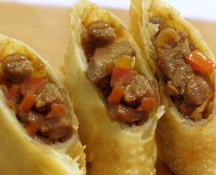 🥟 Lomo saltado: un toque criollo con carne salteada, cebolla y soya.